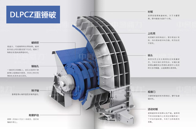 DLPCZ系列重錘破是在中譽鼎力十多年對設備的持續改進和試驗、大膽探索創新下生產出來的一款設備,從原材料選擇到加工工藝逐步改進,解決了傳統錘破容易堵塞、錘頭等配件過快磨損等缺陷,出料粒度具有以下特點: