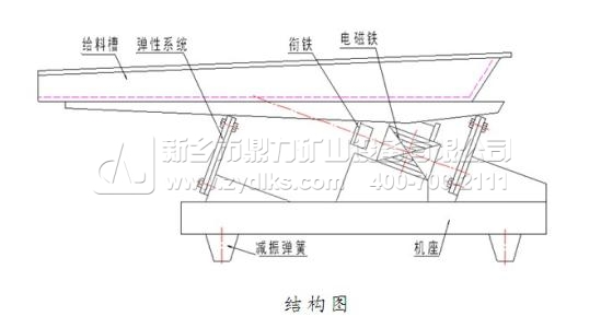 振動給料機銜鐵安裝在電磁激振器中,作為一塊電磁鐵被相互吸引,而運動后和電磁鐵構成閉合磁路,這個運動的鐵磁體被稱為“銜鐵”,銜鐵和主振彈簧連接在一起,在給料機上發揮了連接各個零部件的作用。