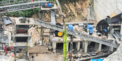物料倉(cāng)中的石頭原料由振動(dòng)給料機(jī)設(shè)備輸送至破碎機(jī)進(jìn)行破碎處理,使用給料機(jī)設(shè)備送料可以生產(chǎn)線(xiàn)的穩(wěn)定、均勻;大塊或硬度較大的物料一般需要兩級(jí)破碎處理,初級(jí)破碎機(jī)設(shè)備將大塊的石頭破碎成較小的物料,然后送至二級(jí)破碎機(jī)再次進(jìn)行細(xì)碎處理;破碎后的物料再使用振動(dòng)篩進(jìn)行篩分選級(jí),篩選出符合規(guī)格的骨料,由輸送帶送至成品料區(qū),不符合規(guī)格的再次返回至破碎機(jī)進(jìn)行破碎;如果需要制砂生產(chǎn),根據(jù)需求一部分的物料送至制砂機(jī)進(jìn)行制砂處理,制砂機(jī)具有細(xì)碎、整形的性能,加工成符合規(guī)格的砂子料;為了使砂子料的品質(zhì)更高,需配置洗砂機(jī)對(duì)砂子進(jìn)行清洗,提高其質(zhì)量,然后成品砂送至成品料倉(cāng)。