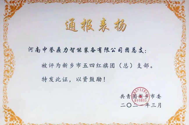 榮譽是鼓勵,更是鞭策。中譽鼎力將積響應共青團新鄉市委的號召,以求真務實的態度和奮發有為的精,以強烈的事業心和責任感,砥礪前行,不懈奮斗,為譜寫新時代中原更加出彩的新鄉絢麗篇章貢獻鼎力力量,以更加的成績向建黨100周年獻禮!