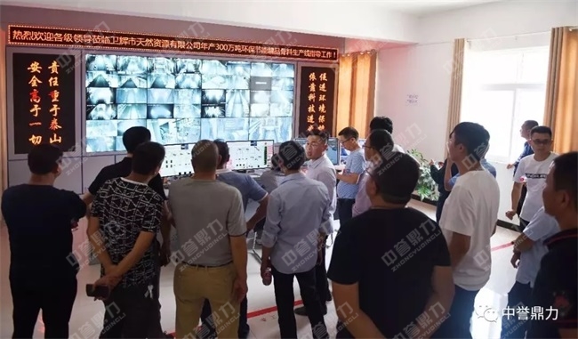 12日上午,考察團先后參觀了公司投資建設的藍天環保材料有限公司“多位一體”項目和EPC承建的孟電集團時產2500噸砂石骨料生產線。