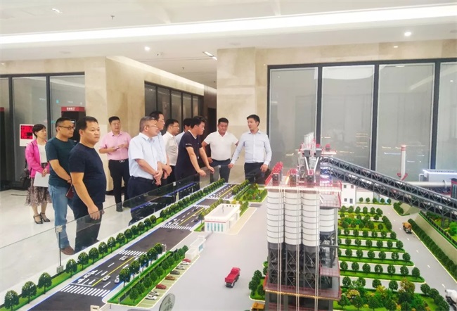 隨后,考察團參觀了中譽鼎力智能裝備新廠區,以及中譽鼎力五位一體循環建材產業園項目沙盤;并在中譽鼎力接待室進行了座談,觀看了中譽鼎力礦山易購APP介紹視頻。臨澧縣導表示,衛輝市在礦山資源整合、砂石骨料生產,以及稅收政策、砂石骨料稅收優惠落實經驗、企業稅收管理等方面有很多可取之處,此次考察收獲很多。中譽鼎力的EPC項目在化、環保化、自動化、智能化等方面做的很不錯,尤其是在礦山智能管理方面的研發和應用工作值得,對砂石骨料產業發展有積作用。