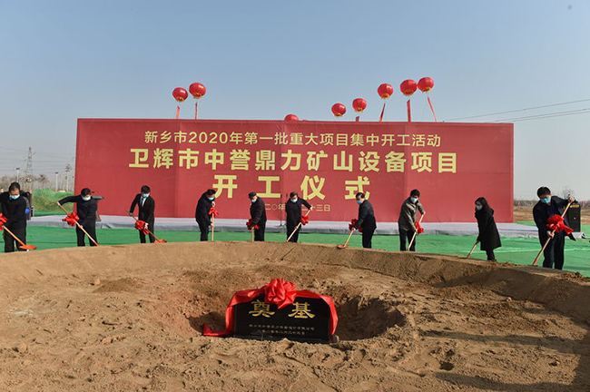 2月23日上午,在衛(wèi)輝市產(chǎn)業(yè)集聚區(qū)隆重舉行新鄉(xiāng)市2020年批重大項目集中開工活動衛(wèi)輝市中譽鼎力礦山設備項目開工儀式。新鄉(xiāng)市市長王登喜,副市長祁文華,市秘書長劉勇,衛(wèi)輝市市委書記梁常運,新鄉(xiāng)市人大原副主任、唐莊鎮(zhèn)黨委書記吳金印,衛(wèi)輝市市長范士富等導出席開工儀式。