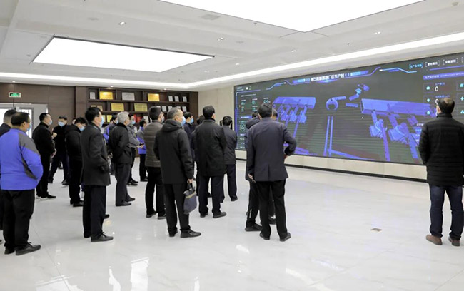在中譽鼎力智能裝備公司廠區,張治民董事長向各位導詳細介紹了中譽鼎力數據、“五位一體”循環建材產業園及一體化智能生產車間。