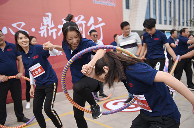 而在團體賽環節,一圈到底的默契傳遞、蜈蚣競走的嚴謹配合以及拔河大對抗的群體力量博弈……無一不彰顯出鼎力人團結協作、敢于爭先的奮斗精。