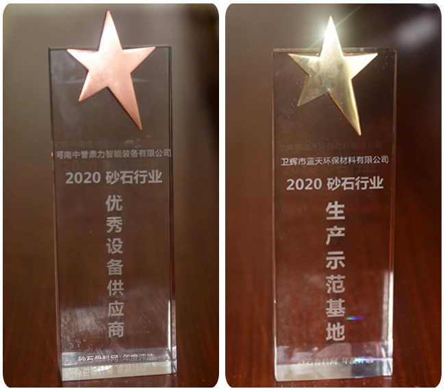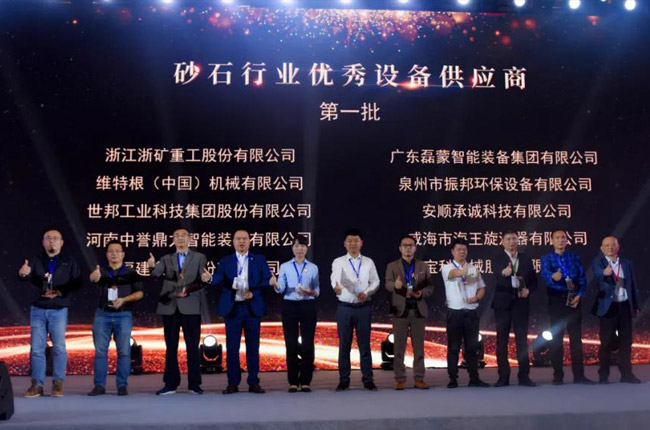 11月18日下午,在砂石骨料網年會頒獎環節,河南中譽鼎力智能裝備有限公司再次榮獲“砂石行業設備供應商”稱號,中譽鼎力投資建設的項目——衛輝市藍天環保材料有限公司“多位一體”大型建材項目獲評“砂石行業生產基地”!
