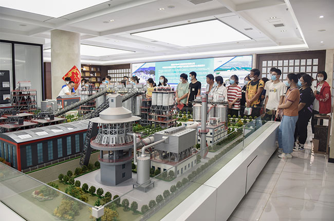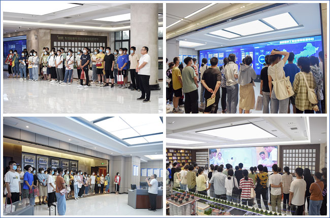 助學金發放儀式結束后,楊乾總經理帶學生們先后參觀了中譽鼎力的發展歷程文化墻、抗洪救災文化墻、綠色建材工業互聯網大數據中心、多位一體建材項目沙盤,并觀看了公司宣傳片,令大家對愛心資助企業有了進一步了解。