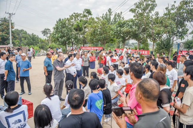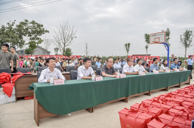8月26日下午,衛輝市委常委、辦公室主任、太公鎮黨委書記胡良,衛輝市副市長孫建明,衛輝市政協副主席崔福明,共青團衛輝市委書記鄭鑫,衛輝市教育局局長孫西,衛輝市教育局副局長焦元玉,衛輝市太公鎮黨委副書記、鎮長劉營斌,周邊32個村支部書記、受資助學生及家長、村民代表共計200余人參加捐贈儀式。