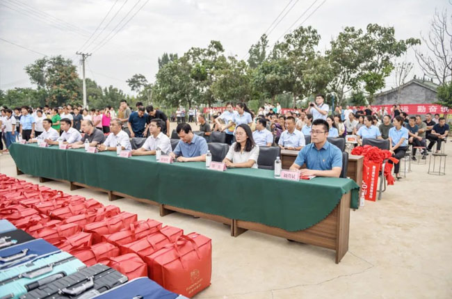 張治民董事長代表藍天環保材料公司,現場為古子澗村大學生和被衛輝一中錄取學生發放數萬元愛心物資,包括每名學生1000元現金,行李箱、太空被等學習生活用品。他對考入理想學府的學子們表示祝賀并予以激勵,希望同學們無畏困難,磨煉意志,自信自立,不斷充實和提高自己,為社會、為家鄉貢獻自己的力量!