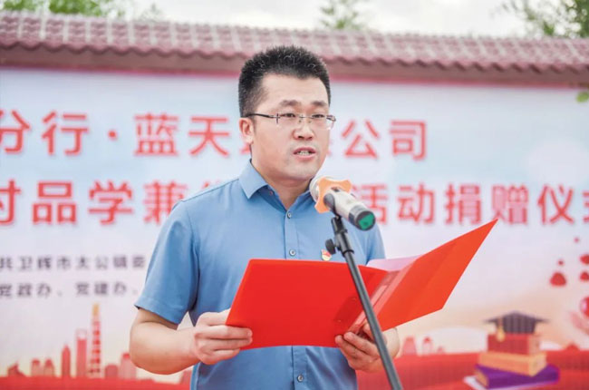 捐贈儀式現場,衛輝市太公鎮黨委副書記、鎮長劉營斌表示,此次捐資助學,大愛無邊。他對中譽鼎力熱心公益的社會責任與企業擔當給予,希望受捐贈的同學們銘記捐贈企業對大家的深情厚愛,努力學習、奮發圖強,立志成才、報效家鄉。