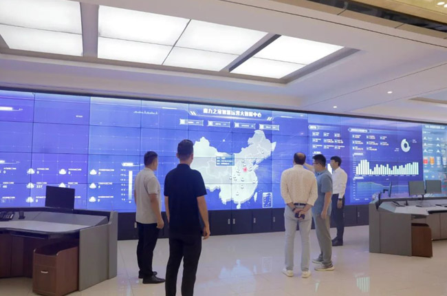在中譽(yù)鼎力綠色建材大數(shù)據(jù)中心,大衛(wèi)多夫?qū)χ悄艿V山管控平臺(tái)表現(xiàn)出來(lái)濃厚的興趣。李觀本對(duì)客戶提出的問(wèn)題進(jìn)行了專業(yè)的解答。