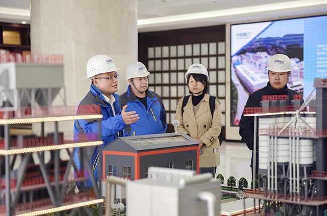 11月25日,考察團一行來到河南中譽鼎力智能裝備有限公司,實地參觀了中譽鼎力綠色建材工業互聯網大數據、多位一體循環建材產業園項目沙盤、智能化一體生產車間等,對公司主營業務有了進一步了解。