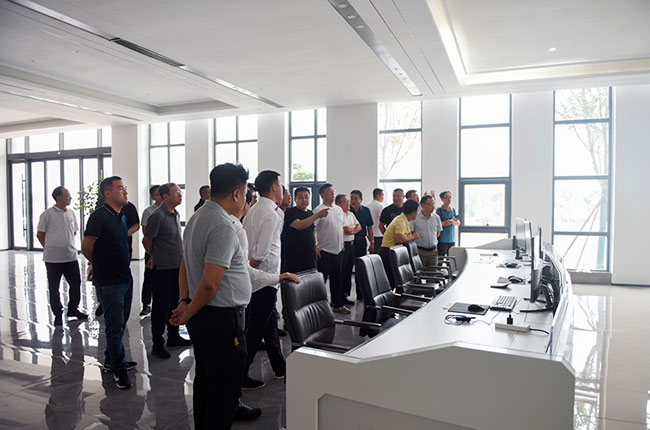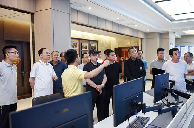 隨后,考察團一行來到河南中譽鼎力智能裝備有限公司,實地參觀了中譽鼎力綠色建材工業互聯網大數據中心和多位一體循環建材產業園項目沙盤,對公司礦山智能管理系統研發及綠色建材項目承建運營等業務有了進一步了解。