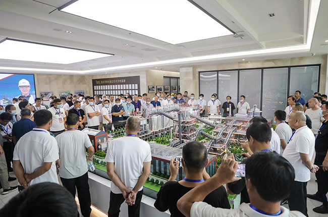 在智能裝備公司綜合辦公樓,考察團先后參觀了中譽鼎力企業(yè)文化墻和多位一體循環(huán)建材產(chǎn)業(yè)園項目沙盤,并觀看了公司相關(guān)宣傳片,對中譽鼎力主營業(yè)務(wù)及近年來發(fā)展情況有了進一步了解。
