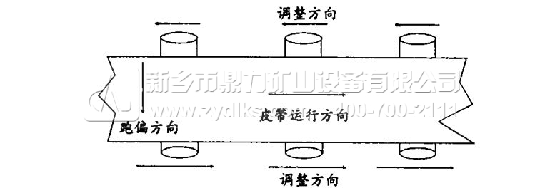 上圖為皮帶機跑偏調整的示意圖
