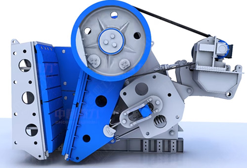 顎式破碎機(jī)工作原理簡(jiǎn)單,主要通過動(dòng)靜顎相互擠壓完成物料破碎,皮帶和皮帶輪在電動(dòng)機(jī)驅(qū)動(dòng)下工作,偏心軸帶動(dòng)動(dòng)顎上下運(yùn)動(dòng),當(dāng)動(dòng)顎向上時(shí),肘板和動(dòng)顎夾角變大,這時(shí)動(dòng)顎板會(huì)靠近固定顎板擠壓物料,達(dá)到完成破碎的目的;當(dāng)動(dòng)顎向下時(shí),肘板和動(dòng)顎夾角變小,動(dòng)顎離開固定顎板,物料下落,從下方排料口排出機(jī)腔。