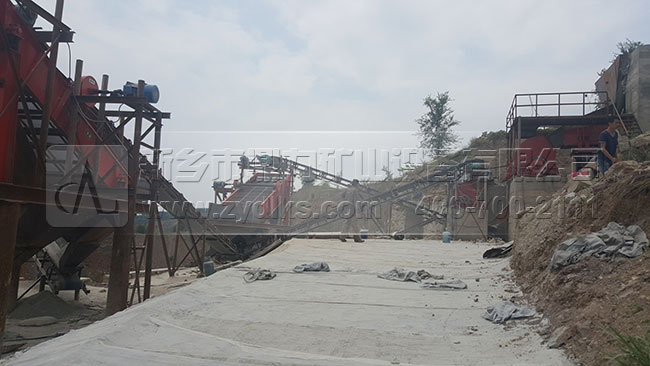 從生產(chǎn)現(xiàn)場我們可以看到,此條日產(chǎn)1500噸砂石料生產(chǎn)線部都是選用我們公司的設(shè)備,原料和成品料之間部都是用皮帶輸送機(jī)傳輸?shù)模a(chǎn)流程是流暢,可以自動化的將成品料生產(chǎn)出來,減少了使用額外附加設(shè)備的幾率。