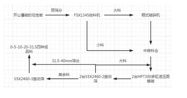 2、花崗巖時產500噸的砂石生產線——破碎