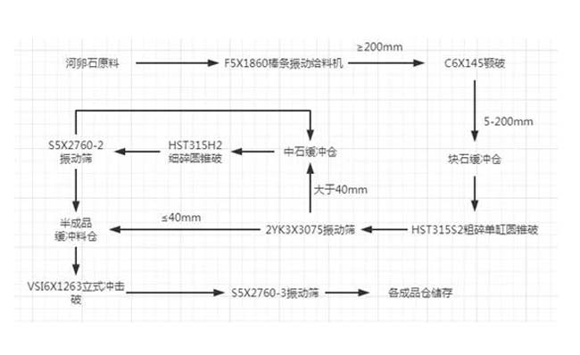 主機設備:C6X顎式破碎機、HST液壓圓錐破、VSI6X制砂機等