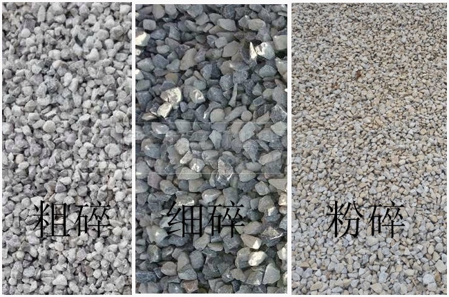 上圖為粗碎、細碎、粉碎分別得到的成品物料