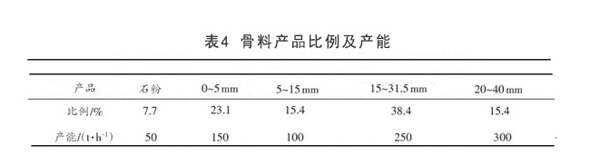 單獨計算骨料生產線各個產品所占份額及處理量見表4。