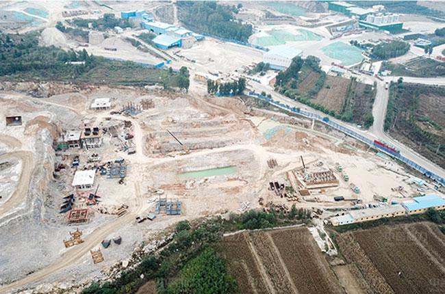昌隆石料時產1500噸骨料生產線項目在建航拍圖