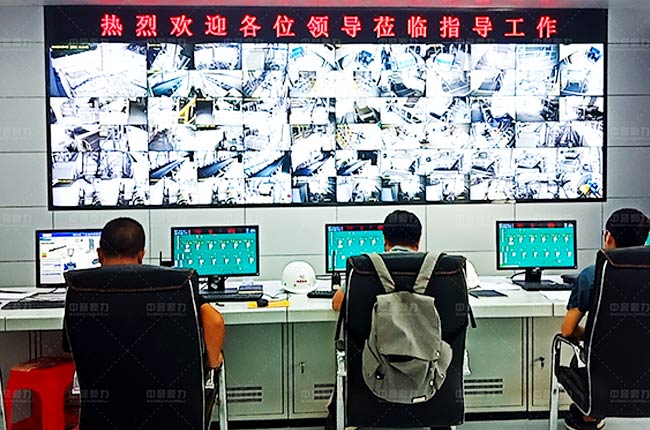 智能砂石生產(chǎn)控制系統(tǒng)中控室監(jiān)控大屏